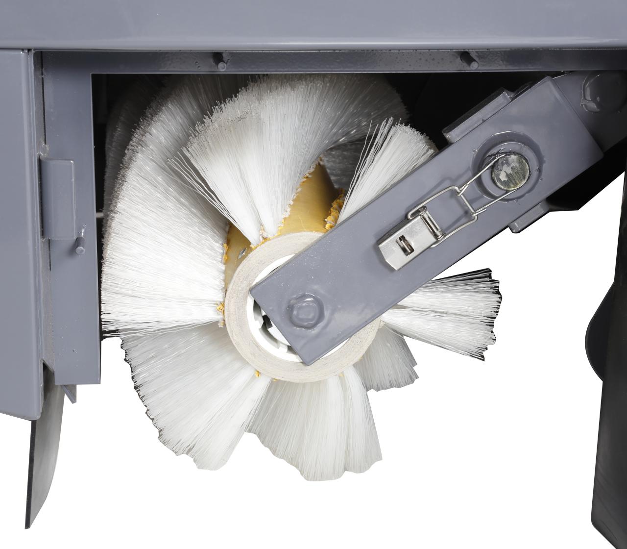 - Hoofdborstel van deze veegmachine heeft een speciale “V”-vorm > maximale vuilopname. Samen met het speciaal flaphefsysteem voor de opname van grofvuil is bij elke toepassing een grote productiviteit gegarandeerd.