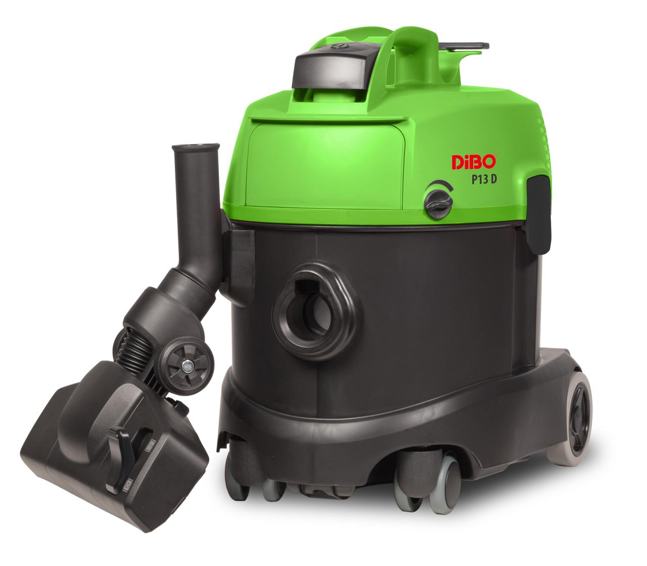 De DiBO P13 D stofzuiger is een compacte lichtgewicht stofzuiger die uiterst stil te werk gaat. De stofzuiger heeft een stevige wielbasis met rubberen wielen (waarvan 2 zwenkwielen) en een stootvast kunststof chassis en ketel. De Amtek 2-traps snelheidsmotor geeft een enorme zuigkracht. De P13 D is geschikt om te werken op iedere ondergrond. Dankzij de 10m lange elektrokabel heeft hij een ruime actieradius. De beweegbaarheid wordt vergroot dankzij de draaibare bevestiging van de zuigslang.